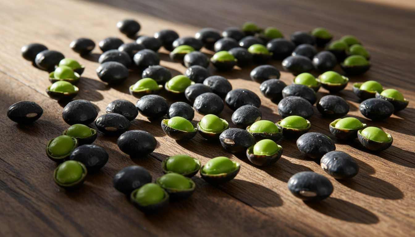 서리태는 대두(大豆)의 한 품종으로, 학명상으로는 검정콩 계열에 속합니다. 일반 콩과 다른 가장 큰 특징은 껍질의 검은색과 속의 초록빛인데, 이 두 가지 색이 만나 독특한 풍미를 냅니다. 삶거나 볶으면 고소하고 달큼한 맛이 일품이며, 콩자반이나 두부, 두유로도 많이 활용됩니다.