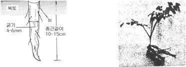 | 1. 뿌리 채취 | 모수에서 볼펜 두께(약 1~1.5cm)의 튼튼한 1~2년생 뿌리를 채취합니다. | 병해충 피해를 입거나 상처가 난 썩은 뿌리는 반드시 제외합니다. |