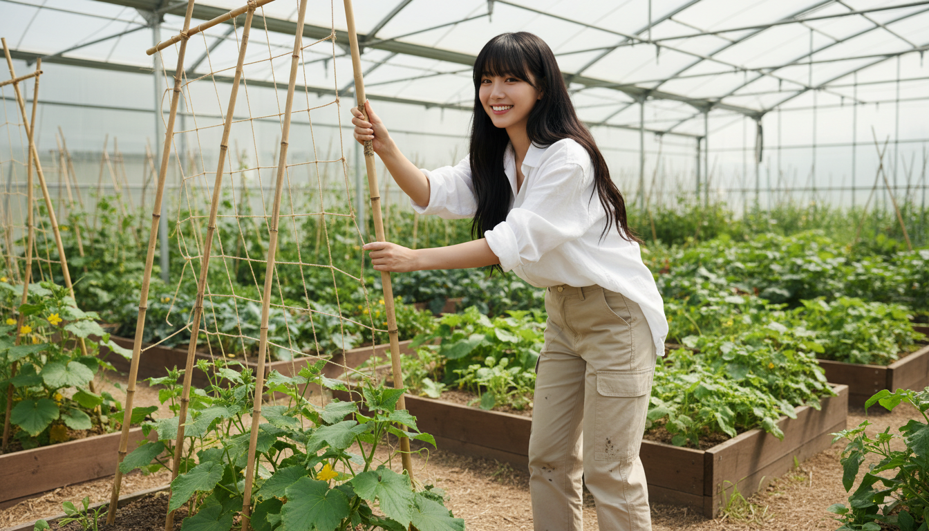 오이는 덩굴 작물이므로 정식 직후 높이 180~200cm의 지주를 세우고 끈이나 그물망을 설치합니다. 줄기가 자라면 주 1~2회 유인끈으로 묶어주어 줄기가 한쪽으로 쏠리지 않게 합니다. 오이 재배하는 방법에서 지주 관리는 수량에 직접적인 영향을 주는 중요한 작업입니다.